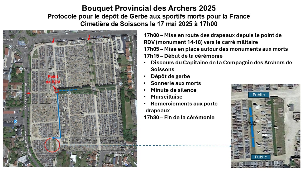 Championnat de France Beursault 2025Peut-être êtes-vous qualifié et inscrit au Championnat de France Beursault 2025 et/ou vous êtes concerné par la remise des prix du Grand Prix du Bouquet Provincial organisé par la Compagnie d’Arc de Soissons. Dans ce cas félicitations ! Et les informations suivantes s’adressent à vous : Horaires des podiums le 5 octobre 2025